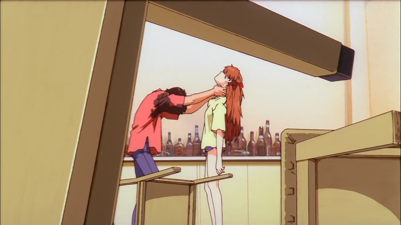 躺在沙滩上、回过神来的真嗣,发现周围只有身旁的明日香。 真嗣突然掐住明日香的脖子。明日香仍是面无表情地凝视着天空,并没有反抗,反而伸出手抚摸真嗣的脸,真嗣终于哭着松开了手。在他哭泣的时候,明日香的目光移向他,口中只轻轻地吐出了一句话:“真恶心。”