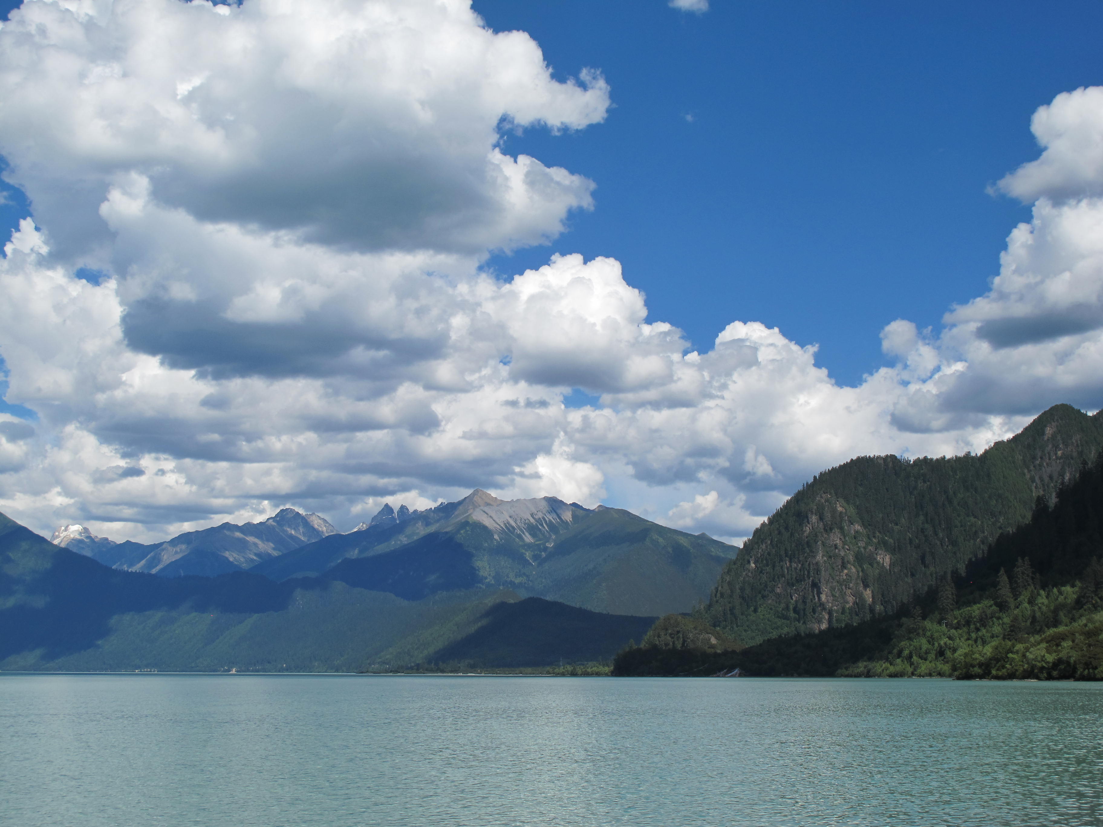 巴松措在林芝的西北边,在湖边有很长的步行走廊,湖边有一个湖心岛,步行走廊的一些地方可以看到远处的雪山。